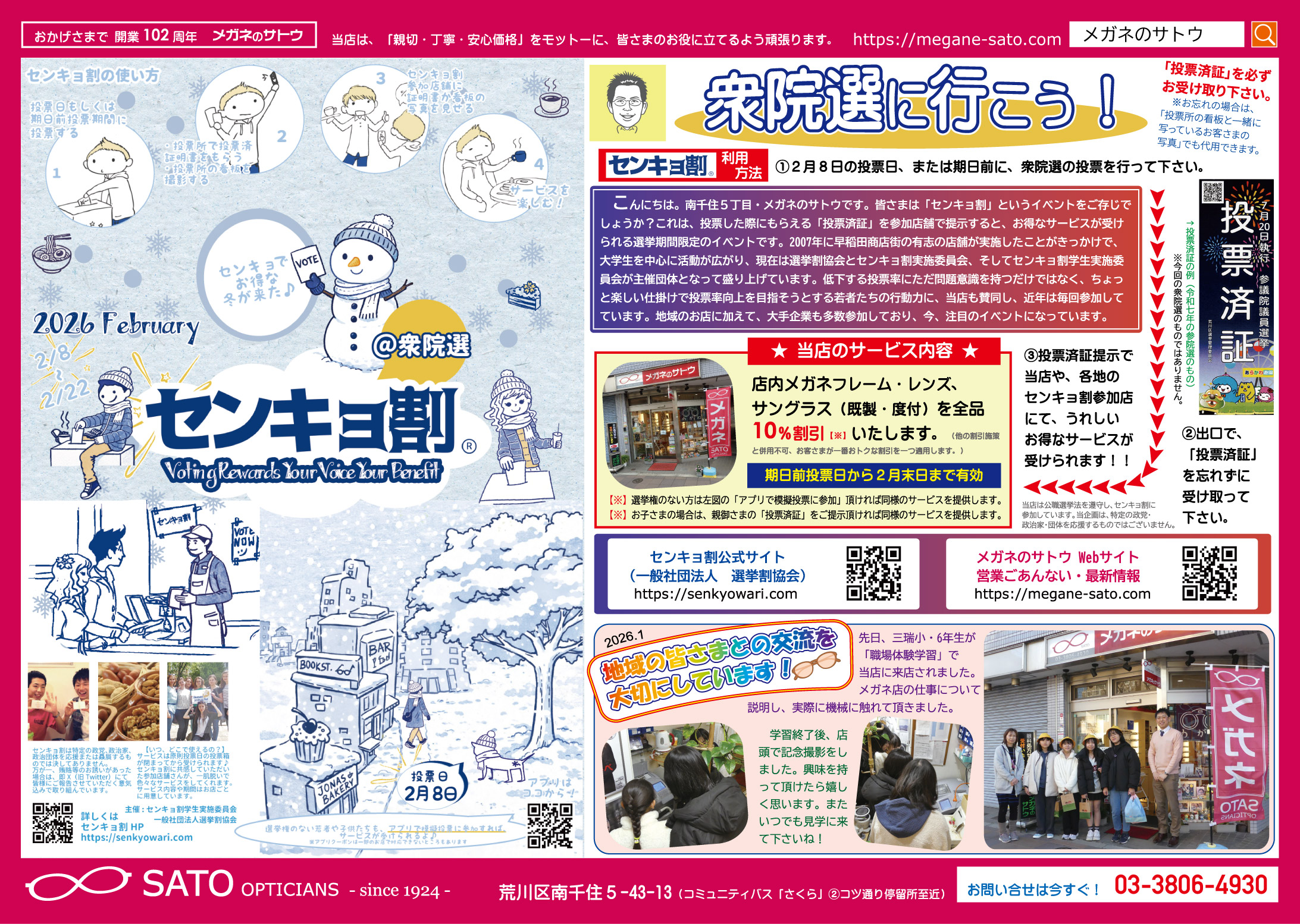 - 当店では、不定期で新聞折込広告を発行しております。最新の広告(おもて)をご覧頂けます。「センキョ割」のお知らせなどを掲載しています。上の画像をクリックして下さい。(PDFファイル)