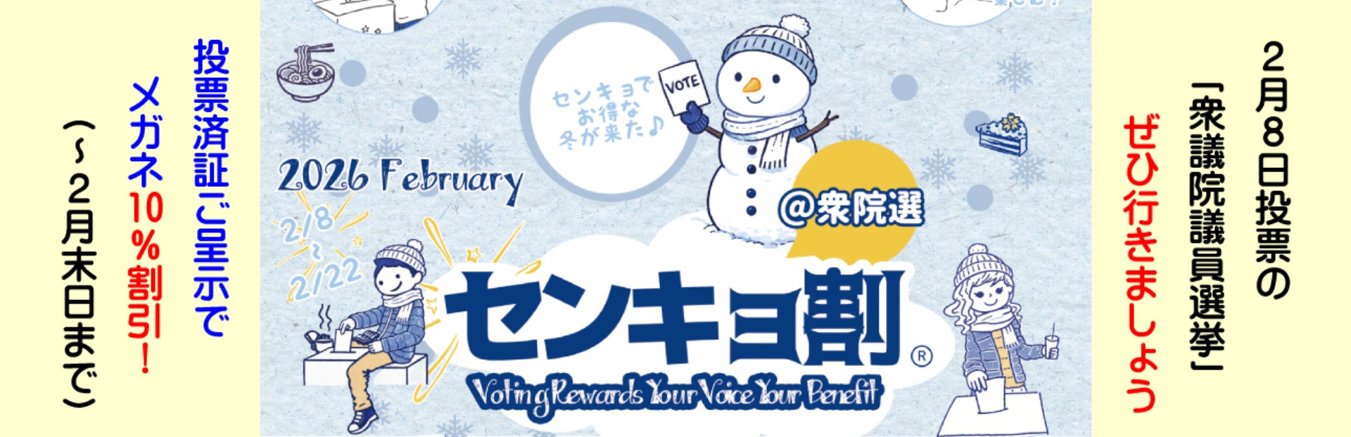 2月8日(日)の「衆議院議員選挙」において、当店は「センキョ割」に参加いたします。